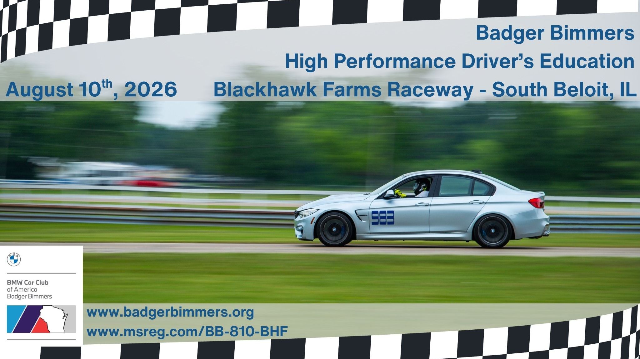 Join the Badger Bimmers for a Drivers’ Education Day at Blackhawk Farms Raceway - Monday August 10 2026